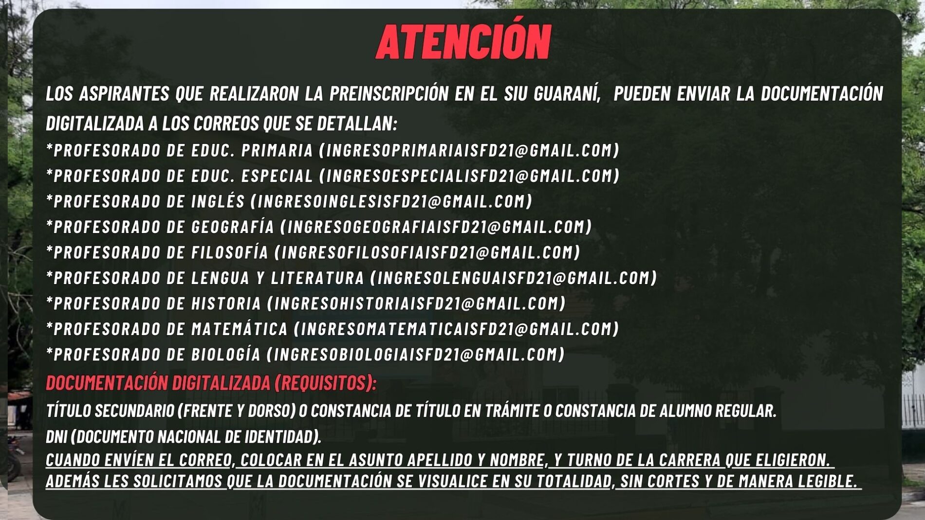 PREINSCRIPCIÓN OBLIGATORIA A TRAVÉS DEL SIU GUARANÍ, SI ESTÁS TERMINANDO TUS ESTUDIOS SECUNDARIOS, TAMBIÉN PODRÁS HACER LA PREINSCRIPCIÓN.