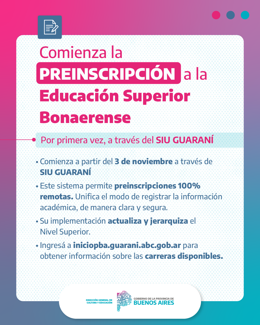 PREINSCRIPCIÓN OBLIGATORIA A TRAVÉS DEL SIU GUARANÍ, SI ESTÁS TERMINANDO TUS ESTUDIOS SECUNDARIOS, TAMBIÉN PODRÁS HACER LA PREINSCRIPCIÓN.