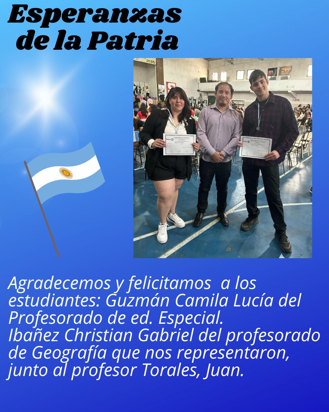 Agradecemos y felicitamos a los estudiantes: Guzmán, Camila Lucía del Profesorado de ed. Especial.