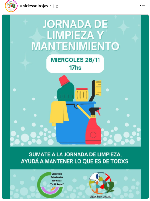 Nos proponemos limpiar las escrituras en las puertas de los baños y, si la cantidad de voluntarios es adecuada, mantener otros espacios comunes como las mesas de la placita. Mientras más seamos, mejor. El Rojas es de todos, colaboremos para su mantenimiento y cuidado.